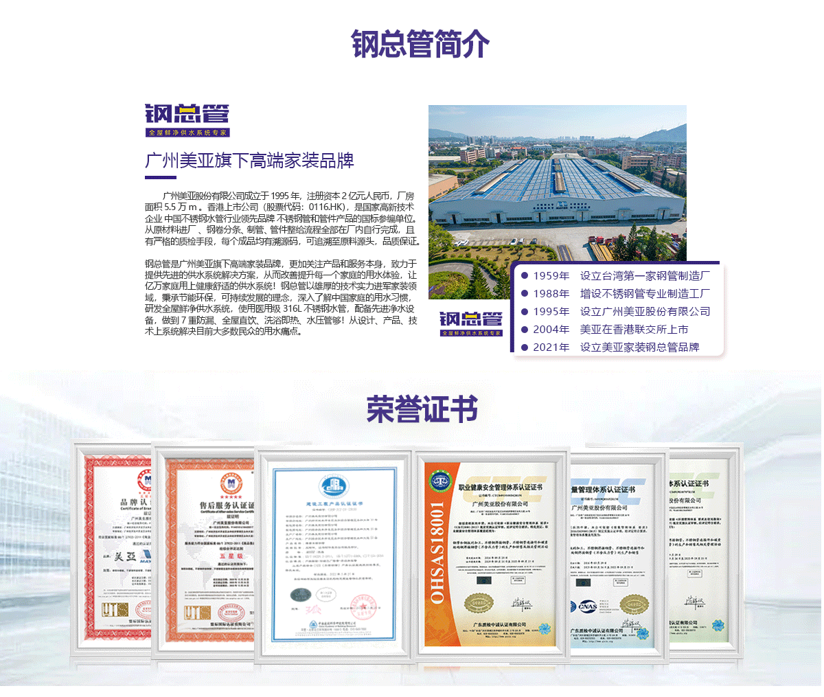 选用国际着名钢厂一级原质料,绝不使用接纳料;严酷把控从产品生产到进入用户家中的每一个办法;100%涡流探伤和气密性检测,确保产品清静。